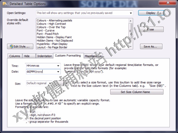 產生的列表可以在一個詳細的版面格式(每行一個項目),或在一個簡潔的多列佈局中顯示。詳細列表可以顯示任何的屬性(名稱,大小,類型,日期,版本等),以及有許多可供選擇的自定義列表項目。您可以創建和保存自己想要的自定義設置。您還可以生成一個XML,HTML或文本格式的列表文件。