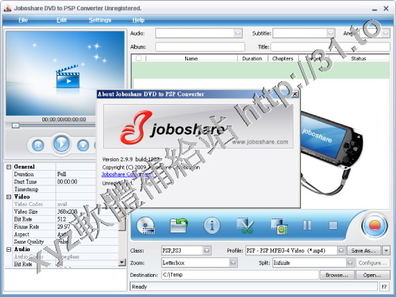 Joboshare DVD to PSP Converter v2.9.9.1227 英文正式版(音視頻轉換軟體)